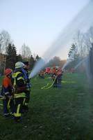 Nach der Sicherstellung der Wasserversorgung hieß es dann „alle Rohre Wasser marsch“. Jeder Jugendliche konnte sich mit der Handhabung der unterschiedlichen Strahlrohre vertraut machen. Die richtige Wahl der möglichen Kombinationen von Zerstäubung, Wurfweite und Durchflußmenge muß ständig geübt werden.