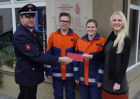 Die Praxis Ute Richter Krankengymnastik und Massage übergab eine Spende an den Förderverein Feuerwehrfreunde Plüderhausen e.V.