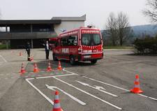 Nach einer Mittagspause mit gemeinsamer Stärkung wurde dann bei verschiedenen Fahrübungen das praktische Wissen im Umgang mit den Kleinfahrzeugen erweitert. Dazu zählten unter anderem verschiedene Geschicklichkeitsübungen, sowie eine Zielbremsung in eine Pylonenbox. Den Abschluss des Lehrgangs bildeten ein gemeinsames Gruppenfoto und die Übergabe der Teilnahmezertifikate der Fortbildung.