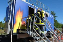 Nach der theoretischen Einweisung der jeweils zusammengestellten Einsatzteams empfangen diese ihre Geräte. Es folgt die Vorbereitung und das Anlegen der entsprechenden Kleidung sowie Ausrüstung. Anknüpfend an die Einsatzkurzprüfung findet die Kontrolle durch den Ausbilder statt. Als begleitende Übungen außerhalb des Brandcontainers sind die Themen Türöffnung, Strahlrohrführung und Flash-Over-Stellung vorgesehen. Direkt in der Anlage finden dann zwei Löschangriffe statt. Durch eine optionale Kameraübertragung können sowohl die Ausbilder als auch die Zuschauer den genauen Ablauf der Übung beobachten. Die Aufnahmen geben vor allem wertvolle Hinweise für eine anschließende Manöverkritik zum Training. Über ein feuerfestes Fenster vom Bedienerplatz aus, kann der Ausbilder ebenfalls parallel die Aktionen innerhalb der Anlage überwachen und bei Bedarf auch eingreifen. Damit ist es aber noch nicht beendet, denn ein effektives Training zeichnet sich nach der „Cool-Down-Phase“ vor allem aus der Nachbesprechung und Analyse des Einsatzes aus. So können Fehler, Erfahrungen und Eindrücke aller Teilnehmer angesprochen und erörtert werden. Das Lernergebnis des Übungseinsatzes wird damit optimiert. Ein effektiver Lerneffekt tritt bereits ab dem zweiten Durchgang in der Brandübungsanlage ein. Daher werden pro Team auch immer mindestens zwei Trainingssimulationen eingeplant.