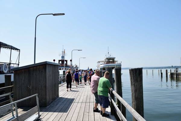 Pünktlich und um 07:00 Uhr starteten wir am vergangenen Samstag, am bisher heißesten Wochenende des Jahres, zu unserem alle zwei Jahre stattfindenden Ausflug. Bereits um 09:00 Uhr stand am Rasthof Illertal mit dem obligatorischen Feuerwehr-Sekt-Frühstück der erste Höhepunkt auf dem Programm. Gut gestärkt ging es dann weiter in Richtung Ammersee, wo wir bei herrlichem Sonnenschein und subtropischen Temperaturen eine einstündige Bootsfahrt unternahmen.