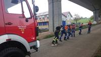 An den mittels Karte zu findenden Stationen galt es verschiedene Übungen und Aufgaben zu bewältigen. Ein Highlight war sicherlich das Wiedersehen mit dem 2015 außer Dienst gestellten Tanklöschfahrzeug. Dies wurde von einem Mitglied der Oldtimerfreunde der Feuerwehr Schorndorf e.V. erworben. Es galt das Fahrzeug mit vereinten Kräften über eine 30 Meter lange Bahn zu ziehen. An einer anderen Station musste mittels Boot ein Parcours auf der Rems zurückgelegt werden. Nach einem kräftezehrenden und spannungsgeladenen Tag konnten sich die Jugendlichen am Nachmittag bei gegrillten Würsten, Pommes und gekühlten Getränken stärken und die Urkunden entgegen nehmen. Für jede teilnehmende Jugendfeuerwehr gab es außerdem ein Fahnenband, welches gleich voller Stolz am Wimpel der Jugendfeuerwehr Plüderhausen angebracht wurde.