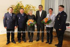 Roland Bauer dankte ihm und seiner Frau Claudia, die ihren Mann Thomas immer tatkräftig unterstützt, für den jahrelangen Einsatz für die Feuerwehr. Als Anerkennung überreichte er einen