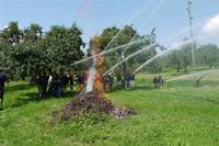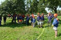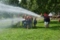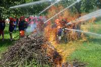 Am Montag, 04. August 2014 fanden sich bereits um 09:00 Uhr 22 Teilnehmer, darunter 6 Mädchen, am Feuerwehrgerätehaus zu unserem diesjährigen Schülerferienprogramm ein. Nach der Begrüßung durch den Leiter der Jugendabteilung Dominik Ströhlein und seinem Team, wurde jeder der Teilnehmer mit einer richtigen Jugendfeuerwehruniform ausgerüstet. Nach einem Rundgang durch unser Feuerwehrhaus, ging es auch schon mit einer kurzen Einweisung in Sachen Notruf und Alarmierung der Feuerwehr weiter. Es folgten Einweisungen in die Grundtätigkeiten eines Löschangriffs und mit Eifer machten sich die Teilnehmer daran das in kürzester Zeit Erlernte bei doch hohen Temperaturen in die Tat umzusetzen. Um die Mittagszeit stärkten sich Alle bei gegrillten Würsten und gekühlten Getränken, bevor es dann hieß „Alarm für Florian Plüderhausen“. Bei einem vorbereiteten Übungsszenario galt es einen brennenden Reißighaufen im Lincolaweg zu löschen. In kürzester Zeit waren mehrere Rohre im Einsatz und es konnte rasch „Feuer aus“ gemeldet werden. Abschließend erhielt jeder Teilnehmer eine persönliche Urkunde und wurde mit dem Feuerwehrauto nachhause gebracht. Die Jugendfeuerwehr Plüderhausen bedankt sich für die Bereitstellung der Streuobstwiese und des Reißighaufens, sowie bei allen Teilnehmern und Helfern die zum Gelingen dieses tollen Tages beigetragen haben und wünscht erholsame Ferientage.