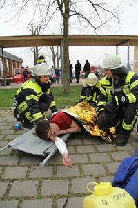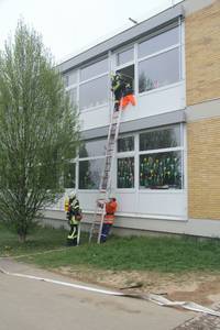 Zum Abschluss des 70 stündigen Lehrgangs, mussten die Teilnehmer ihr Wissen unter Beweis stellen. Dieser startete am Vormittag mit einer schriftlichen Theorieprüfung sowie Einzelprüfungen zu den Themen Erste Hilfe, Technische Hilfeleistung und Knotenkunde. Anschließend wurde, aufgeteilt in vier Gruppen, das Zusammenspiel der Gruppe im Löscheinsatz geprüft. Den Abschluss der Prüfungen bildete eine gemeinsame Großübung für die Öffentlichkeit, an der Atriumschule in Urbach. Nach der Wiederherstellung der Einsatzbereitschaft konnten gegen 15:30 Uhr im Beisein der Kommandanten und Ehrengäste die Urkunden für den bestandenen Lehrgang übergeben werden.