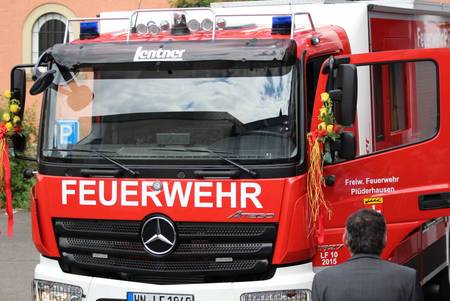 Vor zahlreich erschienenen Gästen aus Gemeinderat, Feuerwehr und benachbarten sowie befreundeten Feuerwehren konnte Bürgermeister Andreas Schaffer das neu beschaffte Löschgruppenfahrzeug 10 Allrad offiziell an die Abteilung Plüderhausen übergeben. Seit Sonntag ersetzt nun dieses neue Feuerwehrwehrfahrzeug das in die Jahre gekommene Tanklöschfahrzeug 16/25. „Unser neues Fahrzeug ist ein richtiges Kraftpaket mit moderner, innovativer Feuerwehrtechnik, das die Leistungskraft der Feuerwehr steigert, das uns erweiterte, flexiblere Einsatzmöglichkeiten schafft und das gut aussieht“, betonte Bürgermeister Schaffer und fügte hinzu, das Ganze habe natürlich mit Gesamtkosten von rd. 331.000 EUR auch seinen Preis. Gerade weil dies viel Geld ist und die Gemeinde finanziell nicht auf Rosen gebettet ist, wurde diese Investition langfristig und sorgfältig vorbereitet. „Hier hat sich einmal mehr die gute und vertrauensvolle Zusammenarbeit zwischen Feuerwehr und Verwaltung bewährt.“ Diese Investition war Bestandteil des seit 2007 im 5-Jahres-Rhythmus vorgelegten langfristigen Brandschutz-Sicherheitskonzepts der Gemeinde Plüderhausen und wurde vom Gemeinderat vor gut über zwei Jahren genehmigt. Das finanzielle Engagement in Feuerwehrtechnik zahle sich auf lange Sicht aus, komme sie doch allen Bürgern der Gemeinde Plüderhausen zugute. „Wir anerkennen mit Investitionen in solche hochmodernen Fahrzeuge den uneigennützigen und von hoher sozialer Verantwortung getragenen Dienst der einzelnen Feuerwehrfrauen und Feuerwehrmänner.“