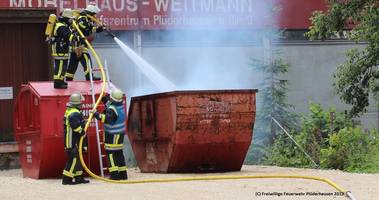 Unter dem Alarmstichwort "Containerbrand" wurde die Freiwillige Feuerwehr Plüderhausen zu einem Brand in die Gmünder Straße gerufen. Dort hatten sich im rückwärtigen Bereich des Gebäudes Gmünder Straße 8 Kartonagen in einem Container entzündet.