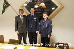 Weiterhin wurden in diesem Zeitraum 48 Übungen abgehalten. Für 2013 gilt es nun die Ausschreibungsunterlagen für die Ersatzbeschaffung des TLF 16/25 auszuarbeiten, sofern der Zuschuss hierfür vom Regierungspräsidium bewilligt wird. Der Personalstand ist mit 84 Feuerwehrangehörigen in den Abteilungen Plüderhausen und Walkersbach unverändert gut. Auch um den Nachwuchs ist es gut bestellt, da in der Jugendfeuerwehr Plüderhausen derzeit 42 Jugendliche aktiv sind. Das Ergebnis der guten Jugendarbeit war, dass auch in 2013 mit Micha Maier wieder ein Jugendlicher per Handschlag in den aktiven Dienst übernommen werden konnte. Dank seiner langjährigen Zugehörigkeit zur Jugendfeuerwehr Plüderhausen wurde er mit der Traditionsnadel der Jugendfeuerwehr Baden-Württemberg ausgezeichnet.
