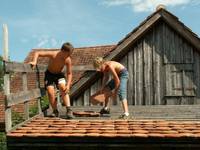 Die zweite Gruppe beschäftigte sich mit Techniken des historischen Hausbaus. Unter Anleitung wurde ein Dach mit Bieberschwänzen (Dachziegeln) in traditioneller Weise eingedeckt. Weiter konnte eine vorgefertigte Fachwerkkonstruktion in der so genannten Rahmenbauweise errichtet werden.