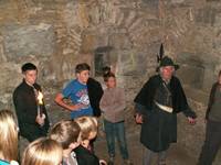 Anschließend ging es in es ins nächtliche Vellberg. Dort erwartete die Jugendlichen eine Nachtwächterführung. In der Atmosphäre der historischen Gebäude und Wehranlagen fühlten wir uns in die Zeit des Mittelalters zurückversetzt. Dies wurde dadurch verstärkt, dass sich unser Nachtwächter mit historischem Gewand, Laterne, Signalhorn und Hellebarde verkleidet hatte. Er führte uns durch die Vellberger Altstadt und konnte uns so manch spannende Geschichte erzählen. Ein besonderer Höhepunkt war dabei die Begehung des nur von Fackeln beleuchteten Wehrgangs.