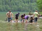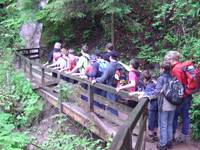 Was wäre ein Ausflug in die Berge ohne eine richtige Wanderung. So stand der Mittwoch unter dem Motto „wandern“. Es ging an diesem Tag auf die andere Seite des Watzmanns, in das Wimbachtal. Geführt von Bergführern des Nationalparks Berchtesgaden ging es über die beeindruckende Wimbachklamm in das höher gelegene Tal. Vorbei an reißenden Wasserfällen und tiefen Schluchten erreichten wir unter fachkundiger Führung das Hochtal. Hier wurden uns auf sehr interessante Art und für alle jüngeren unter uns auf spielerische Weise die Besonderheiten der Natur in diesem Tal näher gebracht. Unser Ziel war ein mehrere Kilometer langes und mehr als 300 Meter tiefes Geröllfeld. Hier wurde der Kreativität freien lauf gelassen und die einzelnen Gruppen konnten interessante Gebilde aus Stein und Holz bauen.