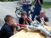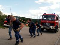 Am Samstag 23.06.2012 richtete die Jugendfeuerwehr Murrhardt anlässlich Ihres 40 jährigen Bestehens einen Orientierungsfahrmarsch aus. Um 9:30 trafen sich zahlreiche Gruppen der Jugendfeuerwehren aus dem Rems-Murr-Kreis und den angrenzenden Landkreisen am Murrhardter Feuerwehrmagazin. Die Jugendfeuerwehr Plüderhausen beteiligte sich gleich mit zwei Gruppen. Es galt Anhand einer Karte und den angegebenen Koordinaten die einzelnen Stationen zu lokalisieren und diese Punkte anzufahren. Es mussten verschiedenste Aufgaben bewältigt werden. Unter anderem musste an einer der insgesamt 15 Stationen ein 10,5 Tonnen schweres Löschfahrzeug nur mit Muskelkraft so schnell wie möglich über eine Strecke von 40 Metern gezogen werden. An einer der anderen Stationen mussten möglichst viele Getränkekisten horizontal gegen eine Wand gestapelt werden. Nach einem kräftezehrenden und spannungsgeladenen Tag konnten sich die Jugendlichen am Nachmittag die erkämpften Pokale (4. und 9. Platz) entgegennehmen und sich bei gegrillten Würsten und gekühlten Getränken stärken.