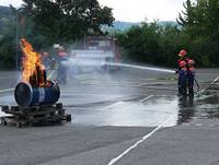 Es folgten Einweisungen in die Grundtätigkeiten eines Löschangriffs und mit Eifer machten sich die Teilnehmer daran das in kürzester Zeit Erlernte bei strahlendem Sonnenschein in die Tat umzusetzen.