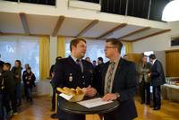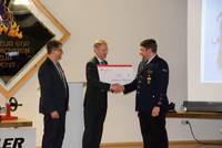 Am Dienstag, 05. April 2016 konnte Bürgermeister Andreas Schaffer die Gäste zum feierlichen Projektabschluss und zur Übergabe des Geräts im Festsaal des Feuerwehrgerätehauses in Plüderhausen begrüßen. Neben der Geschäftsleitung und den Auszubildenden der Firma Bahmüller, sowie den Mitgliedern der Feuerwehren und Jugendfeuerwehren aus Urbach und Plüderhausen, konnten als Gäste auch Vertreter aus dem Gemeinderat Urbach und Plüderhausen begrüßt werden. Es folgten die Vorstellung des Projekts durch Jugendfeuerwehrwart Dominik Ströhlein und der Rückblick auf die Projektwoche und eine praktische Vorführung der Wickelvorrichtung durch den Ausbildungsleiter Fertigung, Herrn Martin Schoenwitz.