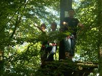 Nachdem wir uns gestärkt hatten, folgte auch schon der erste Programmpunkt. Wir fuhren zum Laichinger Kletterwald. Nach Empfang der Kletterausrüstung und ausführlicher Einweisung konnten sich die Teilnehmer auf altersgerechte Klettertouren begeben. Im 2013 als besten Kletterpark Deutschlands ausgezeichneten Kletterwald kam jeder auf seine Kosten.