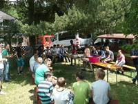 Mit drei Kleinbussen startete die Gruppe auf die Schwäbische Alb nach Laichingen. Nachdem die Zimmer bezogen und die Küchenutensilien verstaut waren konnten wir die direkte Umgebung genauer erkunden. Die Laichinger Hütte der evangelisch-methodistischen Kirche bietet neben einer großräumigen Küche und einer Grillstelle auch vielfältige Freizeitmöglichkeiten. Eine Tischtennisplatte sowie eine weitläufige Außenanlage für Sport und Spiel ließen keine Wünsche offen.
